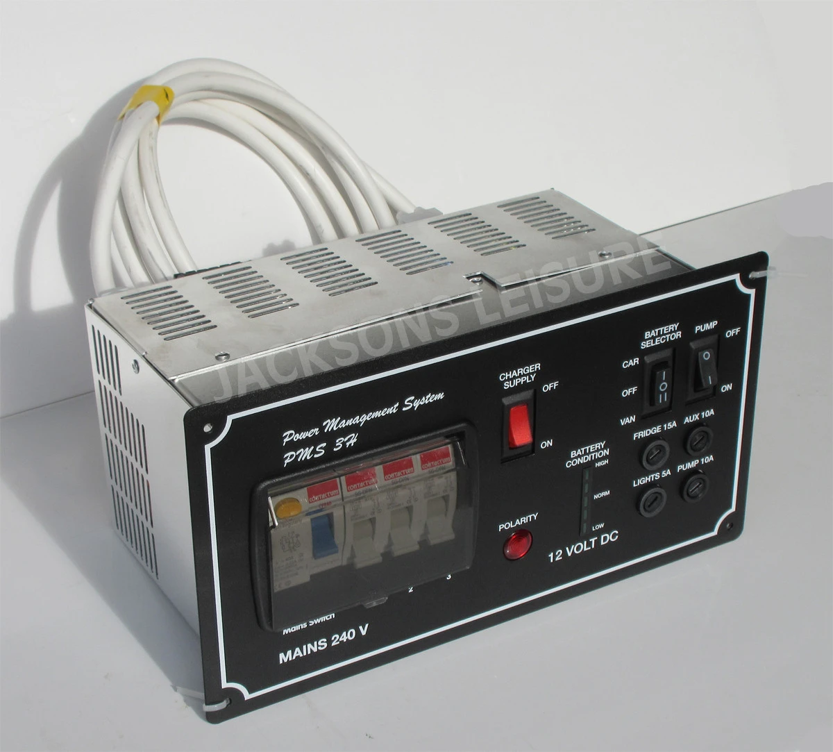 Using the Bonus PMS3 power management system, you are able to safely power both 12v and 230v equipment installed in your campervan or motorhome. The Bonus PMS3 also features 4 fused outputs, a battery voltage indicator, and a separate switch for the water pump.